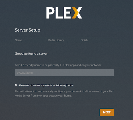 2. Next screen will show you your server, with a randomly generated name. Give it a friendly name and click "NEXT".