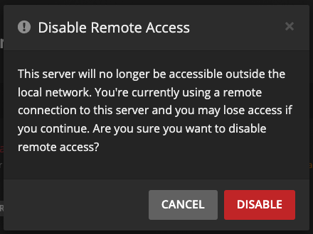 1. Click the Settings icon (top right) → "Server" (top) → "Remote Access" (left).