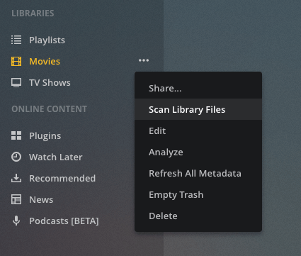 As mentioned in the Introduction page, Autoscan will automatically scan the media files into Plex as they are downloaded, but this will require the Plex database to not be completely empty. So for every new library that is added, a one-time, manual scan is required.
